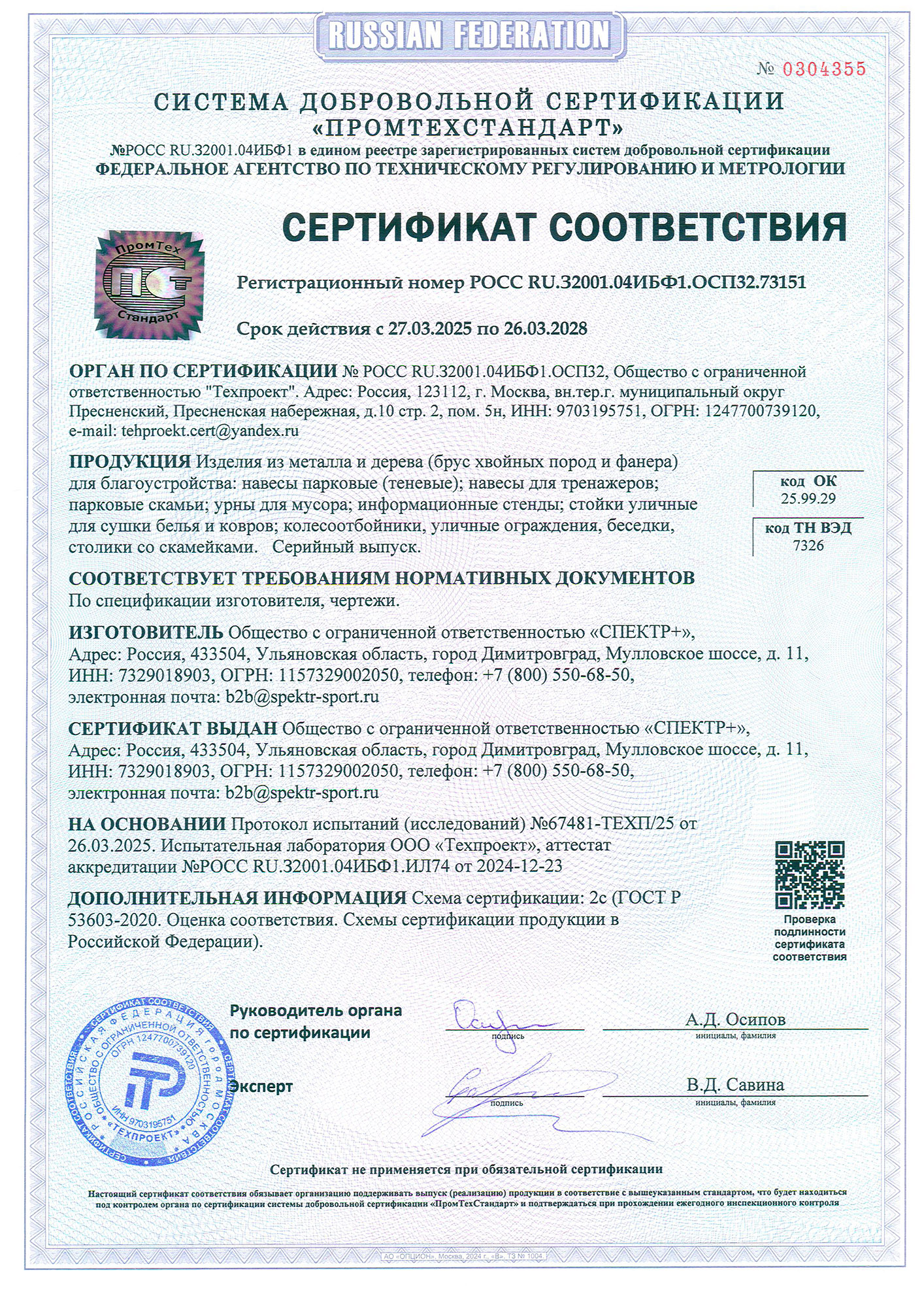 Сертификат соответствия (уличное спортивное оборудование)